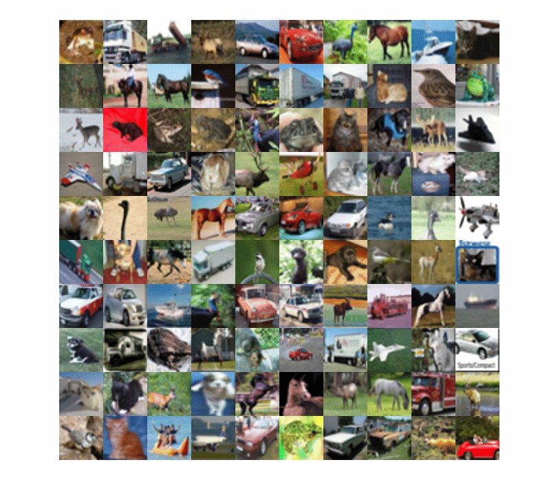 以下是cifar10的部分数据。 共有10类,包括:airplane,automobile,bird,cat,deer,dog,frog,horse,ship,truck。