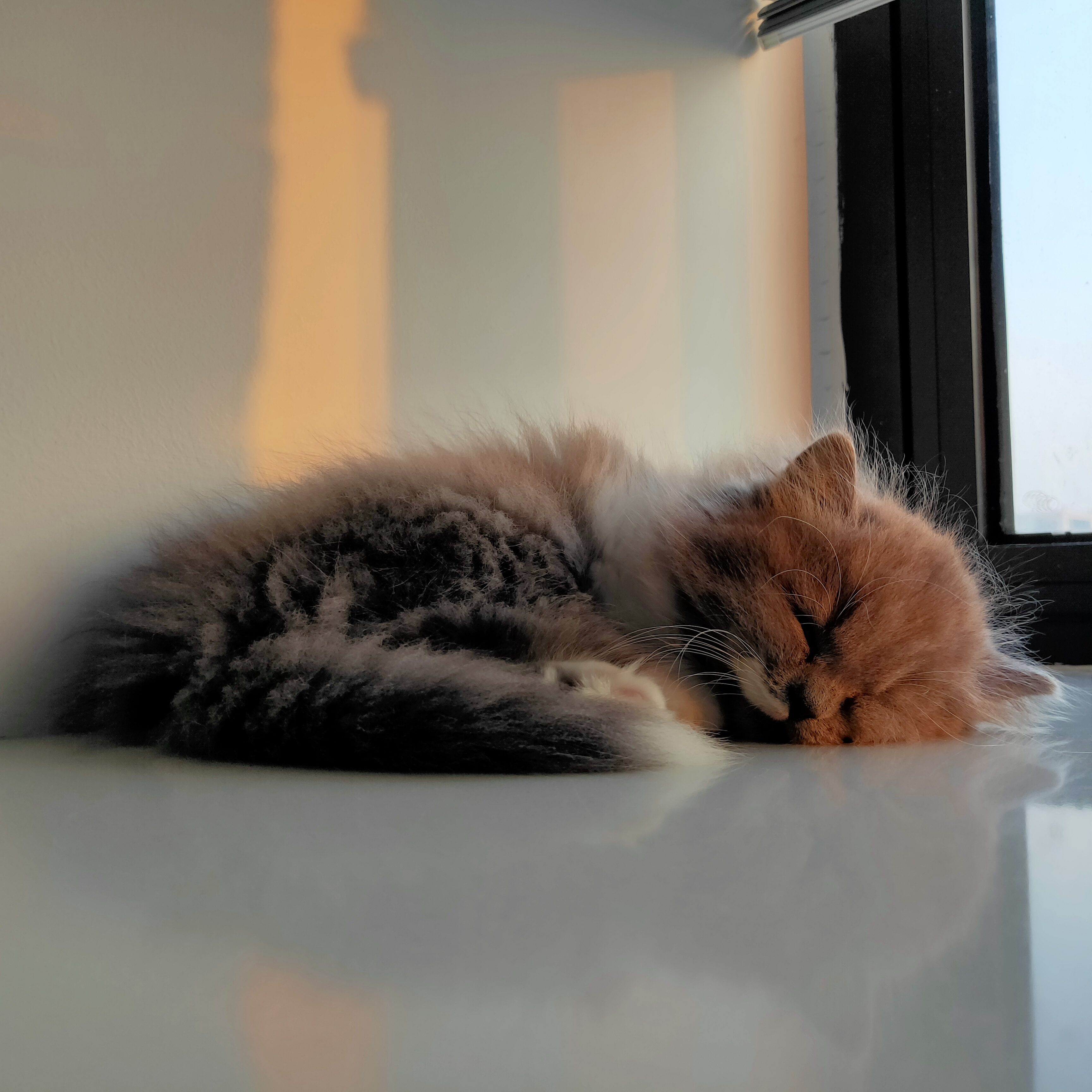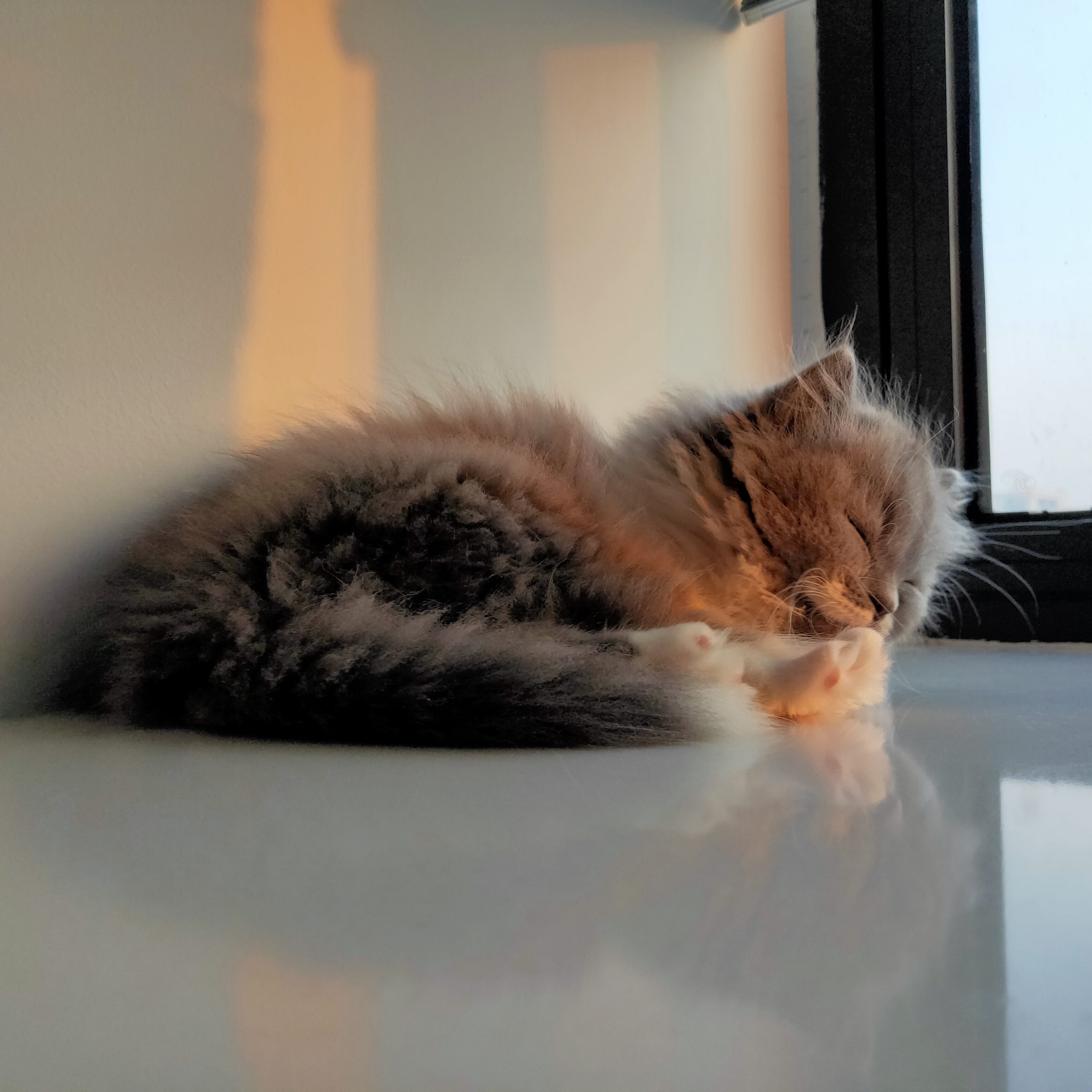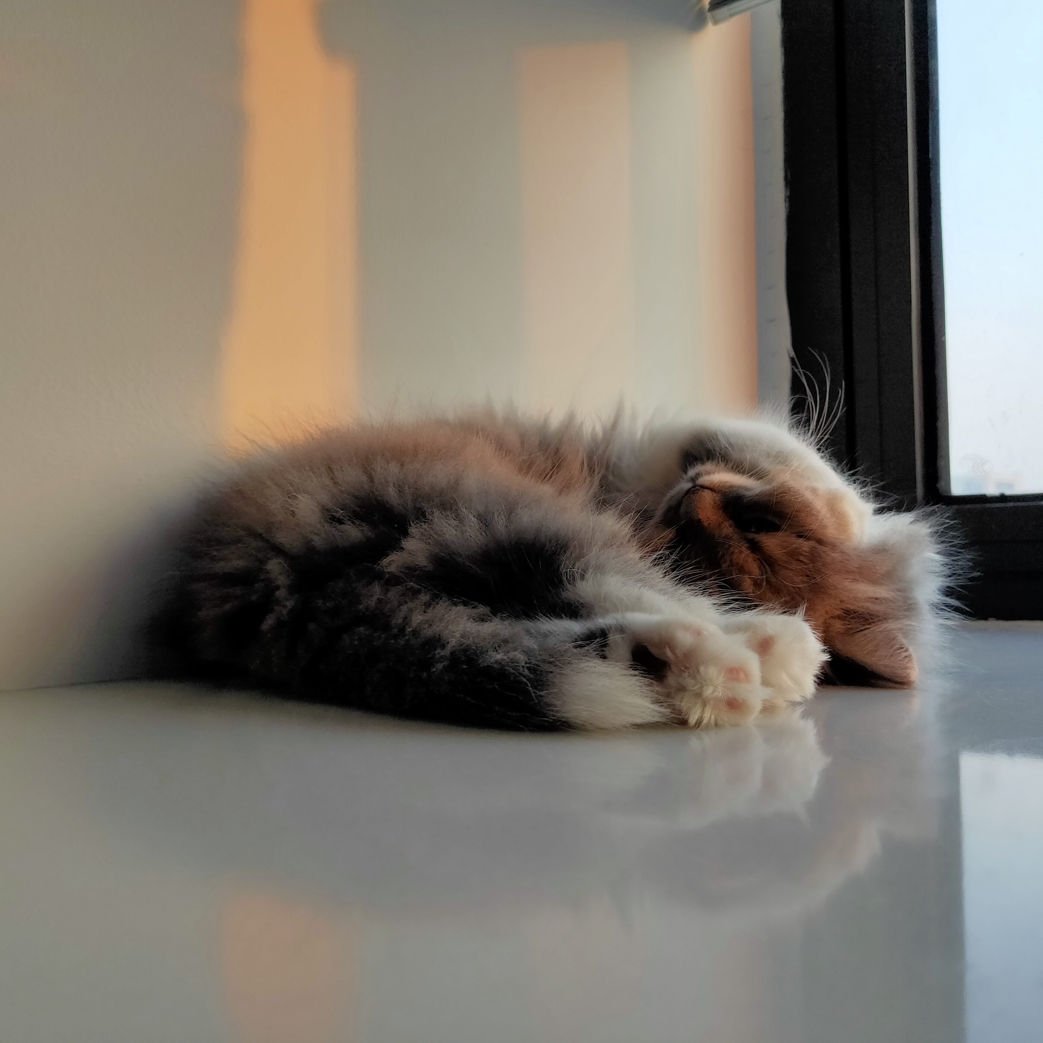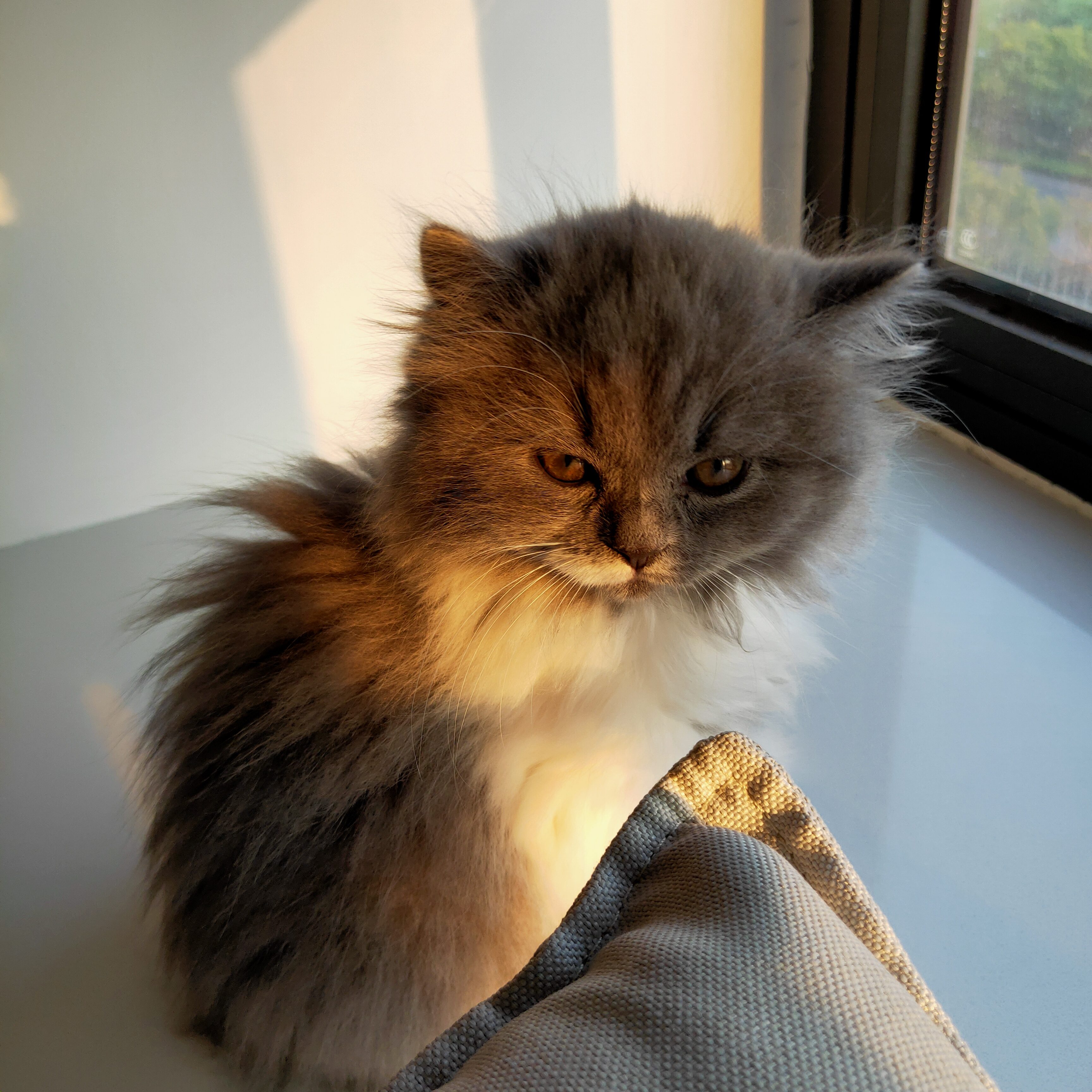 在此之前,先做个自我介绍: - 姓名:芒果(mango) - 性别:母 - 生日:2020年8月8日,排行老五 - 品种:英短(它毛发是长的,但它爸妈和四个兄弟姐妹都是英短短毛,对此我非常疑惑) - 爱好:睡觉,玩纸团