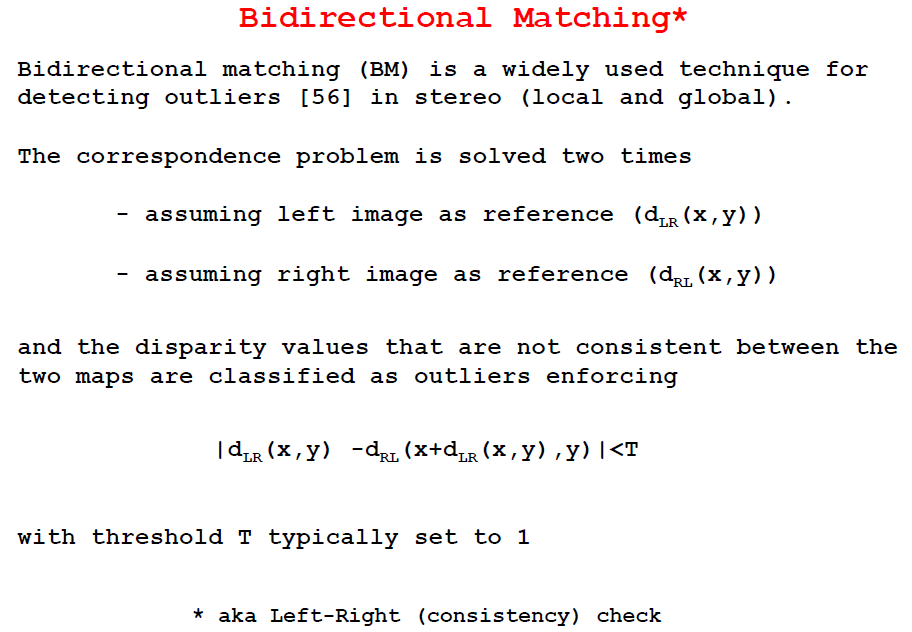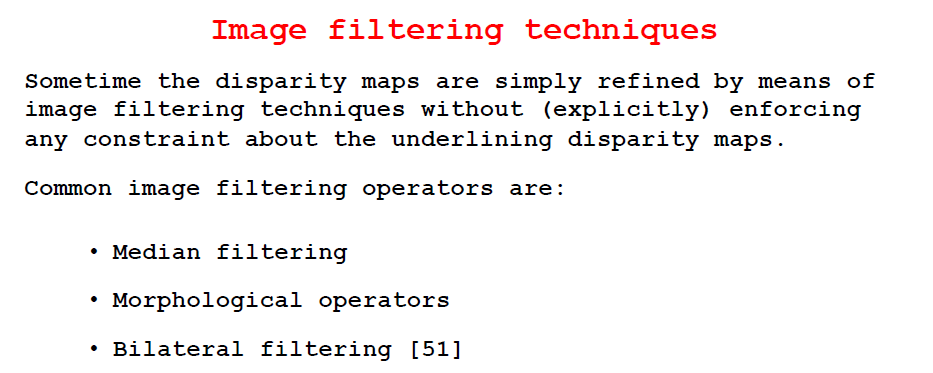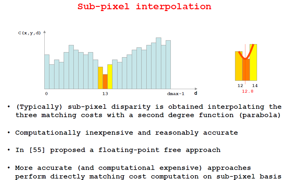 原始视差中包含的离群点需要被检测以及被移除;同时,视差是离散的数据点,有时需要更高的精度;以下将会介绍亚像素插值、图像滤波、双向验证。